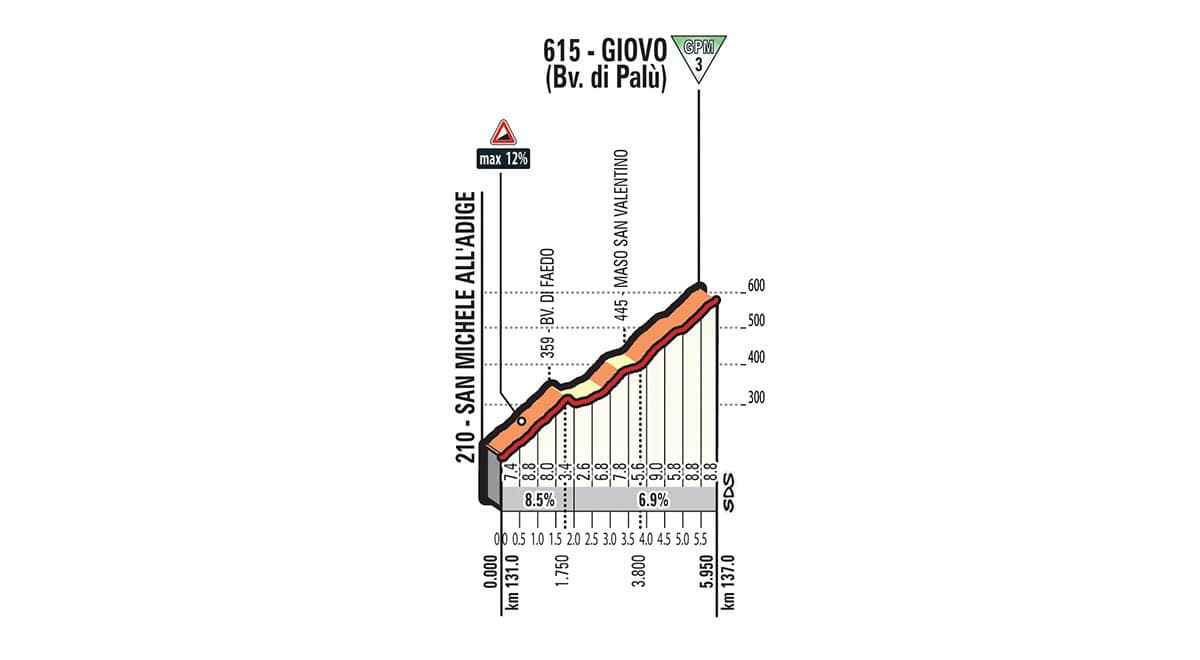 Dritter und letzter Anstieg der Etappe Nummer 17 nach Giovo