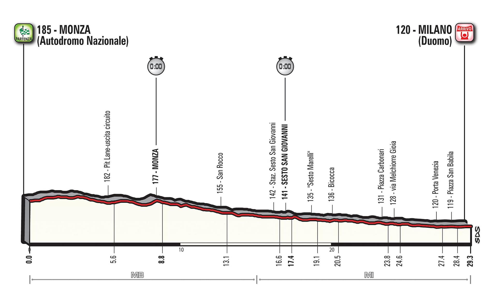 Heute ist die letzte Etappe des Giro d’Italia 2017. Die Etappe Nummer 21 ist ein Zeitfahren von Monza nach Mailand und ist nur 27.6 Km lang. Das Zeitfahren beginnt bei 185 Höhenmetern in Monza und endet in Mailand auf 120 Metern über Meer. Es geht also mehrheitlich runter. Nairo Quintana führt mit 38 respektive 43 Sekunden auf Tom Dumoulin und Vincenzo Nibali. Ich habe heute gelesen, dass es das noch nie gegeben hat das die ersten vier keine Minute voneinander entfernt sind. Es kann also nochmal spannend werden morgen. Los geht es um 13.45 Uhr.