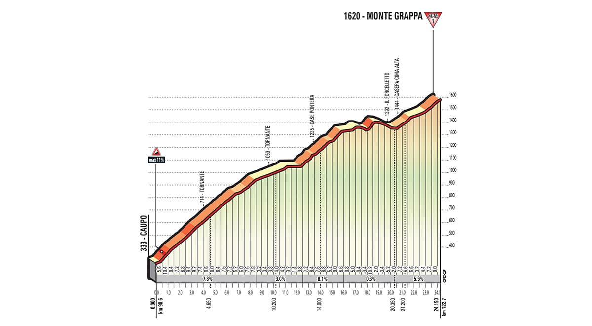 Zweiter Anstieg der Etappe Nummer 20 auf den Monte Grappa
