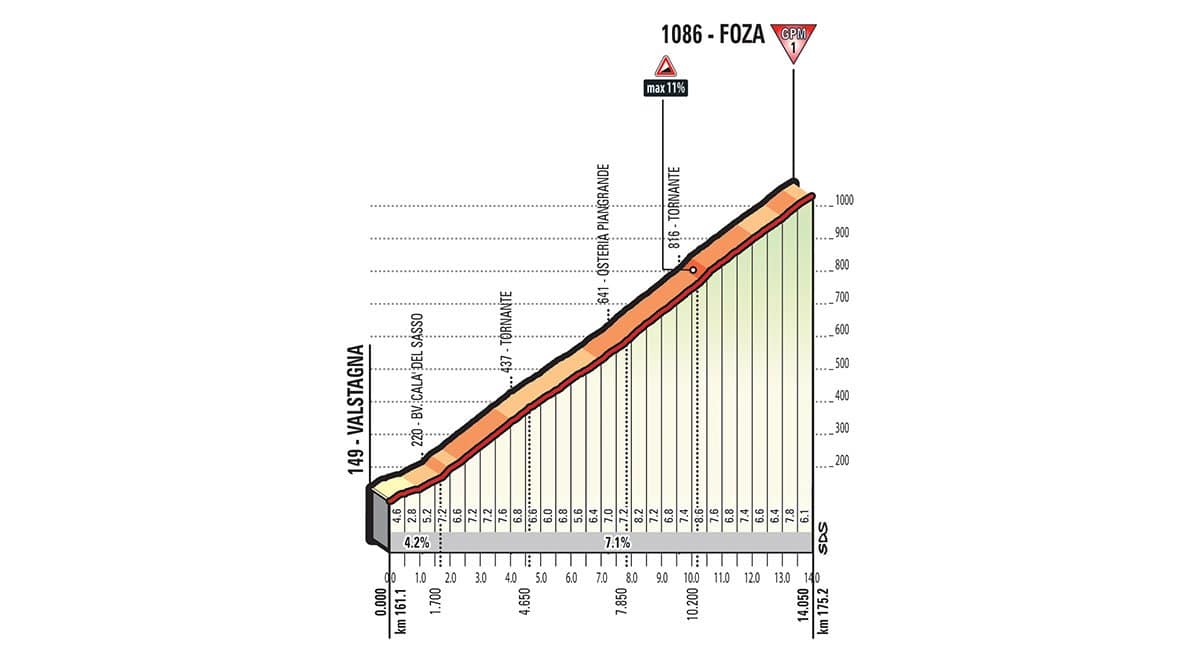 Dritter Anstieg der Etappe Nummer 20 nach Foza